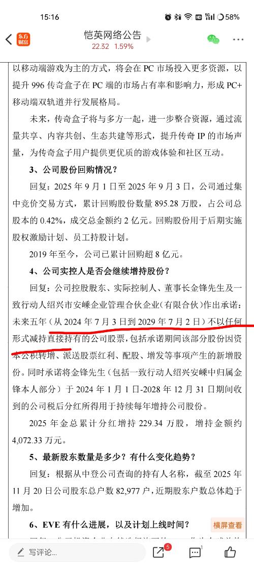 $恺英网络(SZ002517)$这不是利好吗,承诺不减持