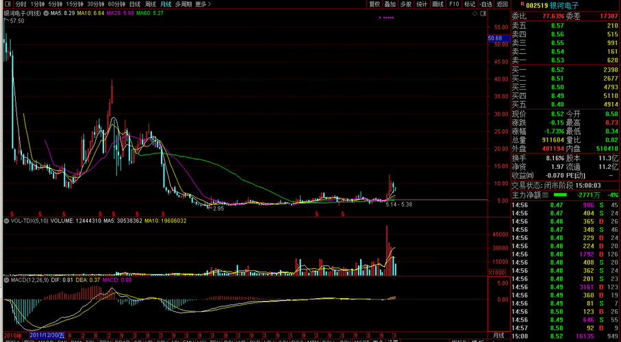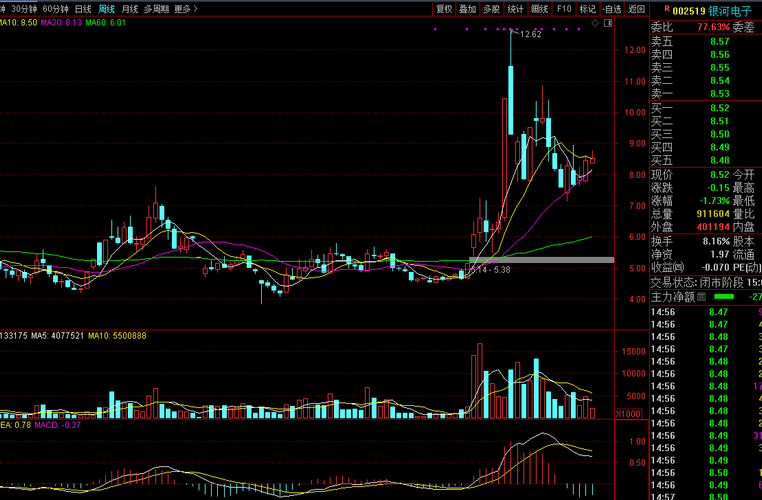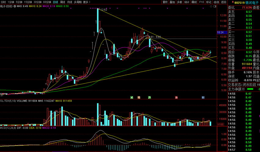 $银河电子(SZ002519)$压力位在8.58元今天洗盘明天突破向上的拉升