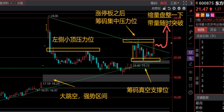 【10.27困困】缩量调整,带量就能顺势突破了。
