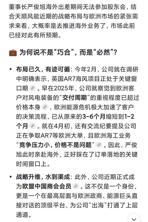 $天顺风能(SZ002531)$根据昨天公告,董事长大概率去海外谈大业务了。