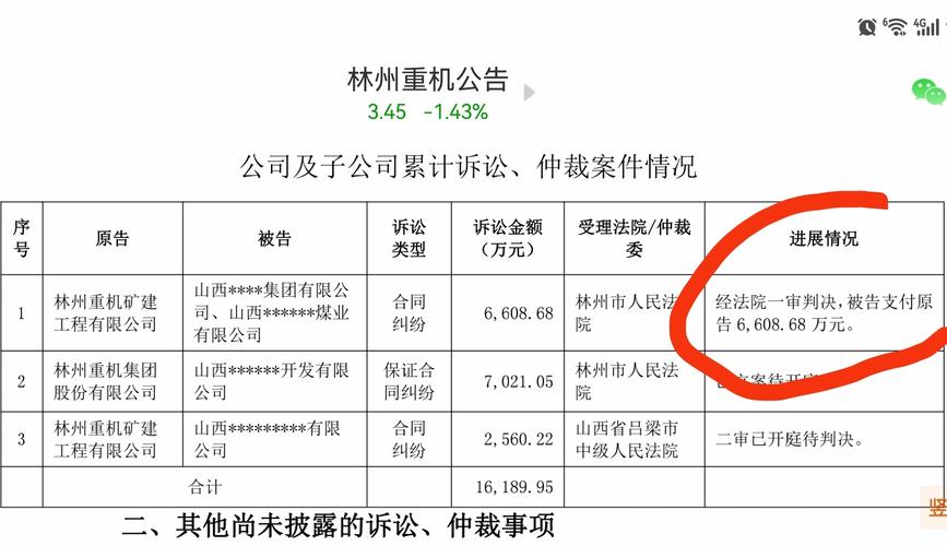 公告 林州重机:关于公司累计诉讼、仲裁情况的公告