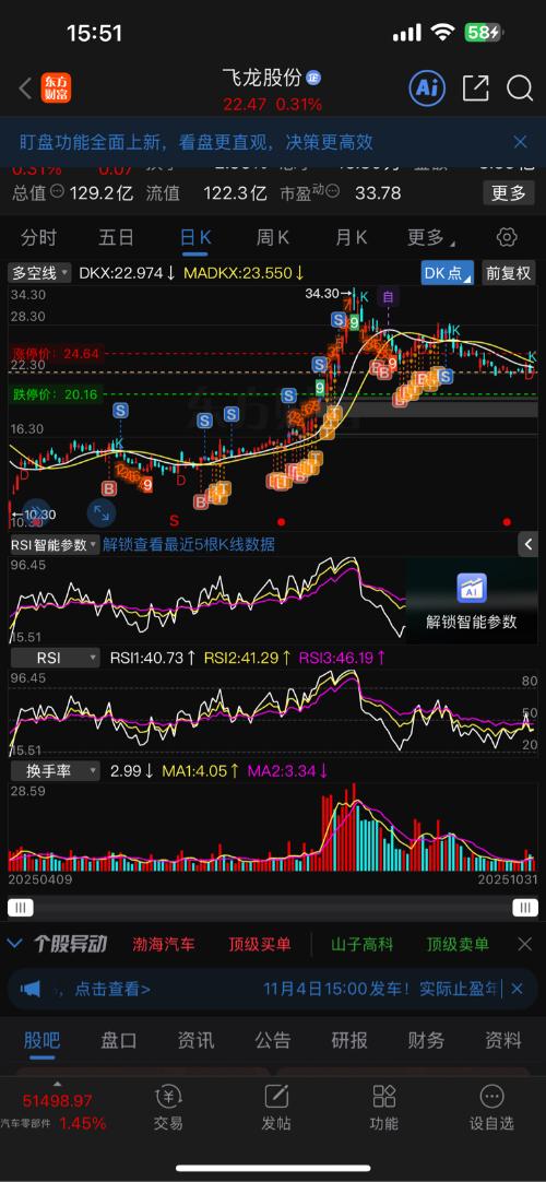 $飞龙股份(SZ002536)$今天22.49早上第一次通知大家,现在下午第二次通知大家,倒车接人