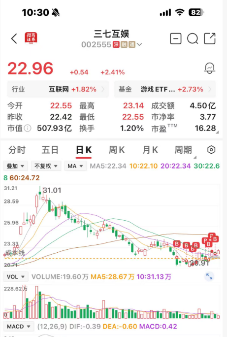 $三七互娱(SZ002555)$有些若置低智力的投资者总喜欢在我这里抬杠。我的逻辑与观点难道不是一以贯之的? 昨天难到不是中东局势缓和导致市场放量七千亿大幅上涨结果?(中东不和平场外资金观望) 2号买难道不是三七放量之后的缩一半量以上的最佳进场买点?(散户等主力进场放量右侧。技术面:真正右侧走出要放量突破24.5后回踩不破!)