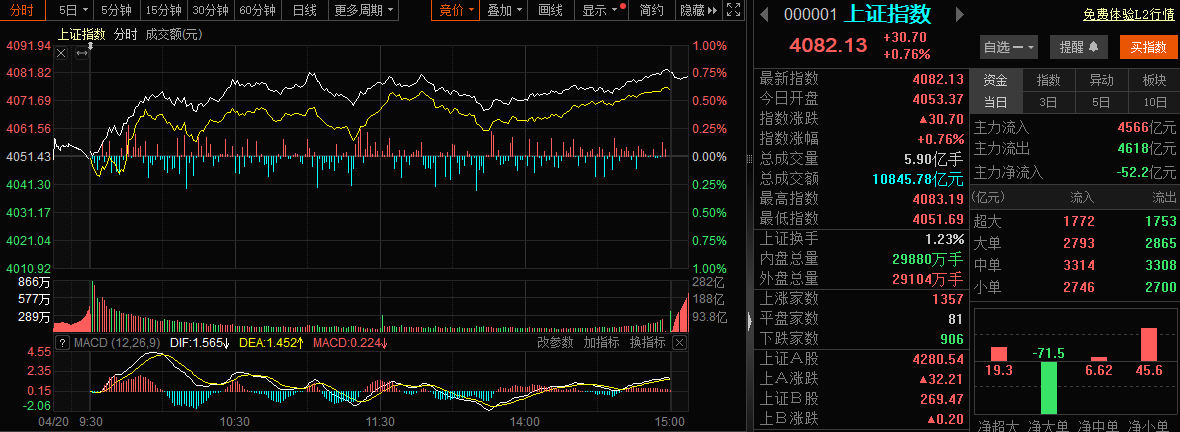 大家好,我是酬勤大道。专盯龙二龙三,专做中盘补涨,不去人气前十的修罗场凑热闹。谁想让我去接最后一棒,我就把他从自选里删掉。 先看大盘。4月20日收盘,上证涨0.76,深成指涨0.55,创业板基本平。全市场上涨3197家,下跌1822家,涨停93家,真实涨停87家,活跃度61.49。盘子不弱,钱也没跑。行业资金流最硬的是非金属材料、元件、通信设备、电子化学品、电池、半导体。最弱的还是旅游酒店、医疗服...