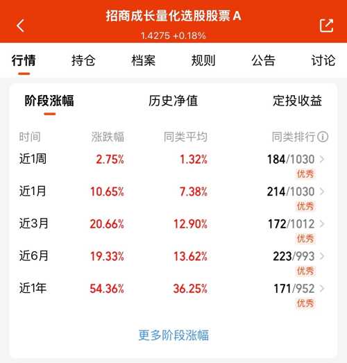 单日涨1.28%+年收益55.66%,招商成长量化精选A量化模型屡验有效。王平经理再限购,明日额度仅2万,24号收紧至20万!