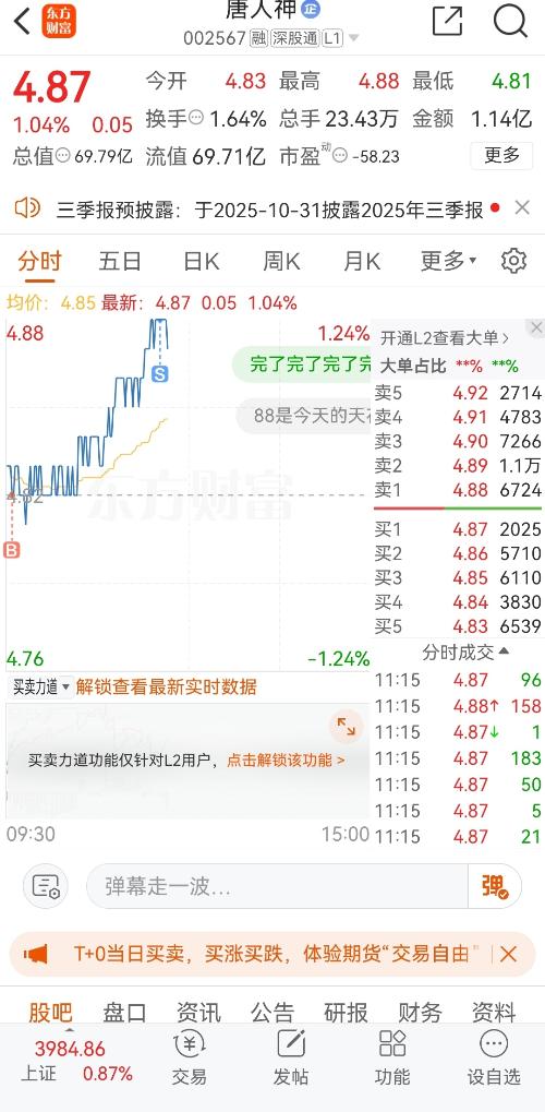 $唐人神(SZ002567)$磕药了?可惜没仓位了