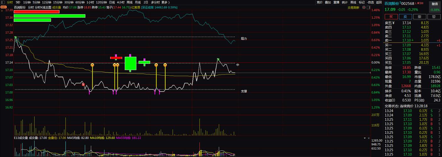 BOLL布林线当前股价17.01元,位于中轨(17.15元)附近,下轨支撑位16.49元,上轨压力位17.82元,