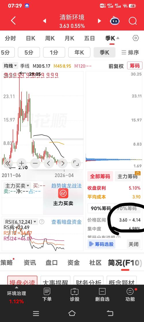 清新环境午盘:纯量化控盘,3.6元区间精准做T