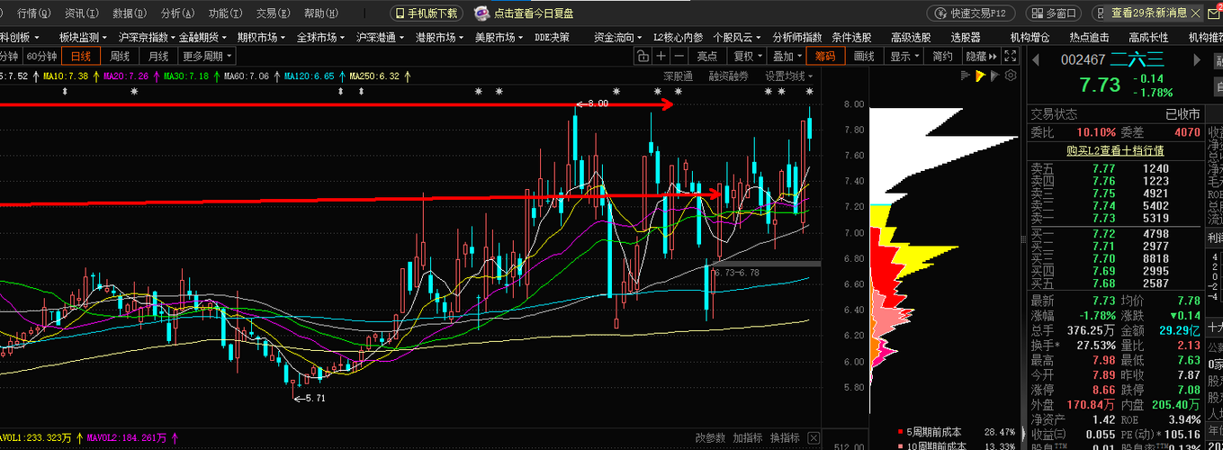 圣阳从第二板17开始买到目前已经二个板,它炒的是液冷服务器概念,今天分割线到20.16,20.7,21.18,21.78,今天不破涨停板继续持仓,也可以不板就卖,永鼎分割线36.7,38.1,39.5,龙蹯科技支撑位22元,压力22.6----22.8,今天圣阳高了不在开仓了,继续持仓
