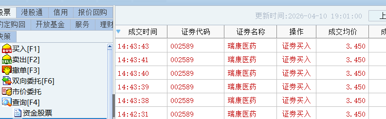下午尾盘的时候,买入002589瑞康医药,下周吃肉可否?!祝持有的朋友们继续发财!!! 喜欢做短线或者超短的朋友们,可以一起探讨啊!!!