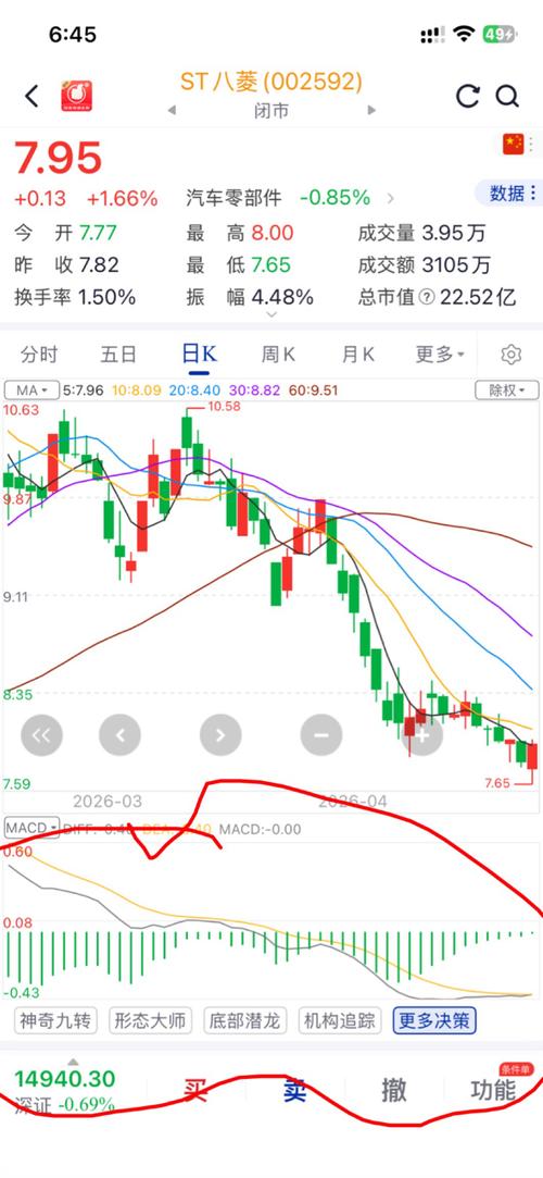 $ST八菱(SZ002592)$今天下午看了几十个票。发现只有八菱的MACD。直接几十天没有红过。牛啊。老太太,估计A股找不到几个能像八菱这样的连续几十天。一天红线都没有