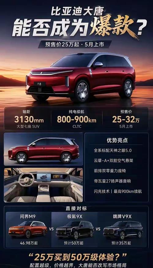 72小时10万+订单!比亚迪新车卖爆了:950km续航+5分钟闪充! 前几天聊大型SUV的时候,好多网友都在问:比亚迪大唐还没动静?别急,这不就来了吗! 自从比亚迪在2026年北京车展上甩出大唐这张王牌,整个车圈都炸了。预售24小时订单破3万,72小时突破10万+,但这热度,妥妥的2026年车市第一爆款! 更狠的是,比亚迪这次真的“狠起来连自己人都打”。预售价25-32万的全尺寸旗舰SUV,直接把...