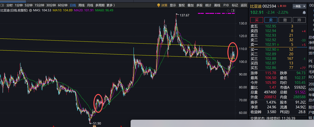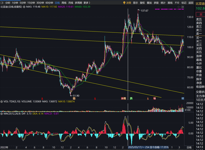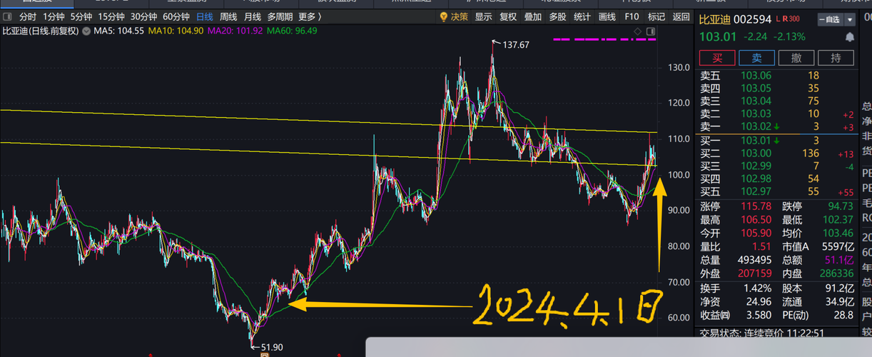 4.1 早评:比亚迪 103—108 元区间震荡,突破看这一信号