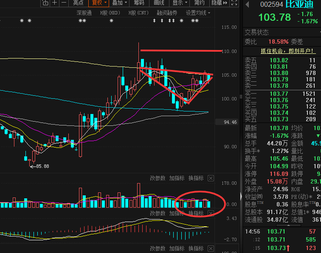 从2月的85.88元涨到3月的111.82元,已经涨30%了,也提前兑现了二代刀片电池、海外出发的利好。接下来至少就是持续半年的单边下跌,具体参考去年5月的137元跌到今年2月的85。机构资金都是逐利的,别人也是要考核的,外面光模块那些涨那么好,为啥要想不开在比亚迪这里被套牢?别人是涨了还能涨,高了还能高,比亚迪不行的。