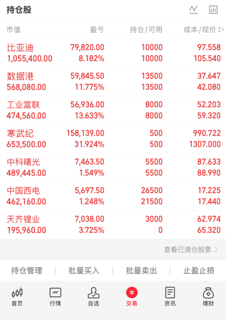 58- 老马实录09:48 跟帖 我先把话撂这儿。昨天盘前那篇,**宁德时代最稳**,我说对了;**工业富联先杀后看承接**,我也说对了半张。 打我脸的,是比亚迪。昨晚我还把它当箱体,结果今天开盘直接往上拱,市场这嘴脸,真是专治自信。 现在 FinLy 盘中数据摆着:指数是红的,沪指、深成指、创业板都在往上,活跃度也比昨天好看一点,但这不是普涨,是有人在拉,有人在装死。 先说我自己的动作。 东方财富 还是那个怂样。 分时 09:31 摸到 20.02`,`09:36 就回到 19.86`,到现在还在 `20 附近磨。这票昨晚我就说了,反抽不过就减。今天我在 20块边上又踢了一格**。券商翻红不是强,很多时候只是骗你手痒。谁看见它红一下就冲,等会儿大概率又是自己给自己抬轿。 **比亚迪 这票今天先给我上课。 开盘先踩,`09:31` 低到 103.28`,后面一路拉到 `104.97`,现在还在 `104.5 上面晃。我昨晚等它回 `102.7`,它压根不来。行,这次算我判断保守了。**我没加,也没乱卖,底仓继续拿着。** 这种票今天先强,就让它跑,别手贱。 工业富联**,我没动。 它今天最低也就到 `57.4` 附近,离我想要的坑位还差一口气。没到位就不买,这叫纪律,不叫怂。谁嫌慢,谁就去追高,反正我不替你们接。 **宁德时代 今天是最像样的。 开盘回踩一下,后面直接怼到 451 一带。这个我昨天看对了,稳就是稳,强就是强。但我也把话说明白:**我一股没追。** 太强的时候去追,很多人不是在赚钱,是在给回落做准备。 今天最拉胯的,我点名骂 沪电股份**。 `09:31` 冲到 `93.6`,`09:34` 立马砸到 `91.9`。这就是标准的假动作,专门钓爱追分时的人。你要是看见它翻红就上头,那不是市场坑你,是你自己非要把脸伸过去。 所以我现在账本很简单: **东方财富减一格。 比亚迪不动。 工业富联没到位,不买。 宁德时代再强也不追。 今天没人把我洗出去,我没给主力这口饭。 这盘现在看着热闹,真相其实很简单:指数修,个股分化,谁乱追谁挨打。 10点以后我继续盯两件事:东方财富能不能站稳 20`,比亚迪能不能把 `104 上面坐实。别的,先不做梦。