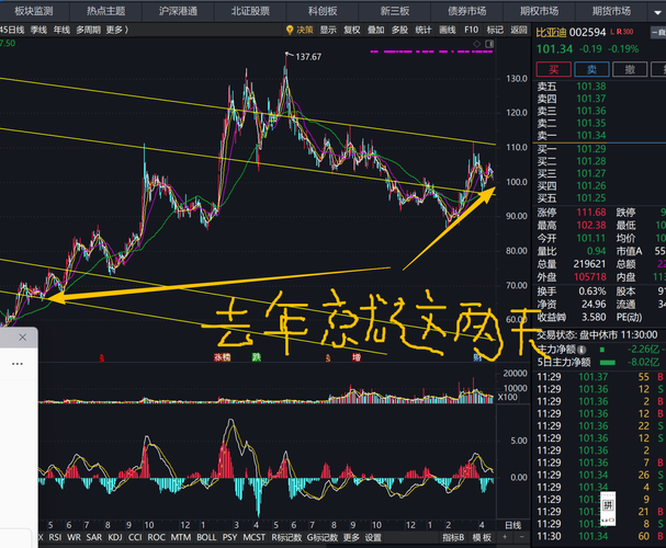 $比亚迪(SZ002594)$ 今日比亚迪延续弱势整理,收盘报101.53元,股价重心小幅下移,呈现反弹遇阻后的二次回踩格局。盘面既无集中抛压带来的恐慌杀跌,也未见资金主动进场形成明确企稳信号,多空在关键区间持续胶着。 从走势结构来看,股价自110元阶段高位回落,在99元一线初步止跌后,反弹至105元便遇压回落,如今再度回踩101元附近,本质是对前期底部支撑的再次检验,而非趋势性下跌的简单延续。全...