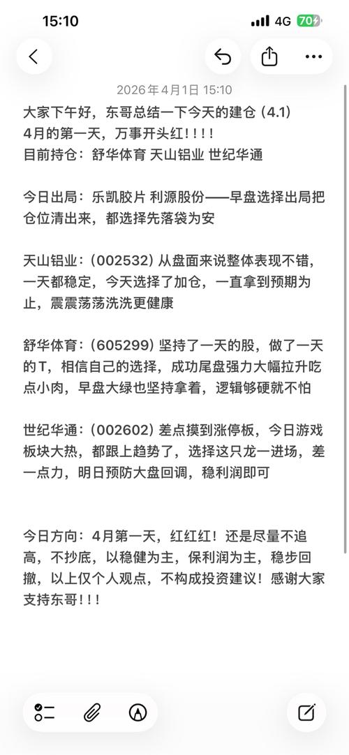朋友们,大家下午好,我是东哥(第十七天) 今天是4月1号,很有希望的一天,挑战用100万到1000万看需要多久,后续我会每天在我这个号记录,广大股友可同我一起见证 今日盈亏:+27529 $世纪华通(SZ002602)$ $舒华体育(SH605299)$ $天山铝业(SZ002532)$ #收盘点评##复盘记录#...
