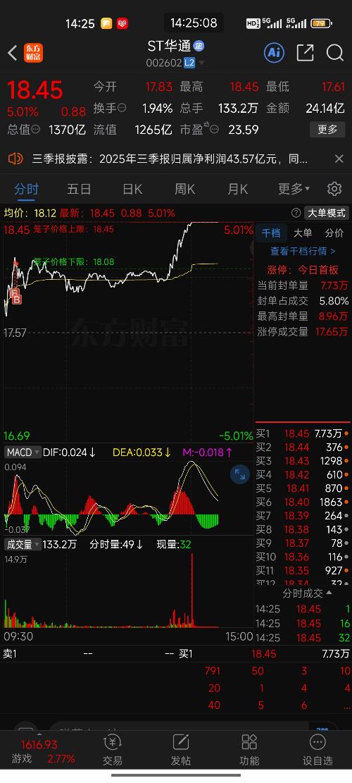 $ST华通(SZ002602)$真的玩不好,又卖早了!算了吧有赚就行,不贪