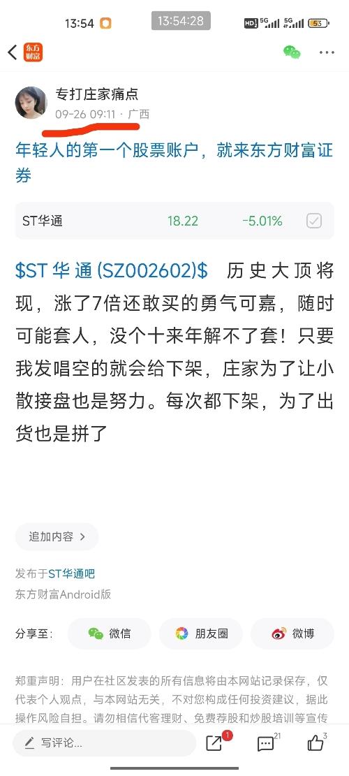 $ST华通(SZ002602)$先天韭灵根,跌的20个点能拿住,涨得5个点就急忙扔了