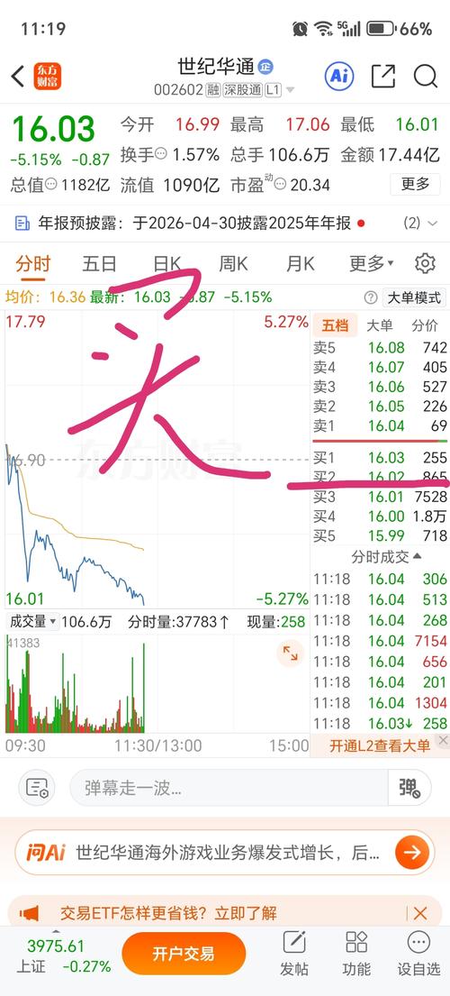 $世纪华通(SZ002602)$16.02买入成交,应该到了今天底部了,破16的概率较低