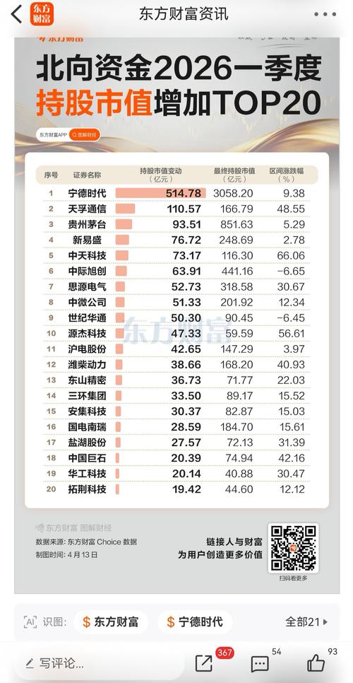 资讯 一季度北向持仓扫描:持股2.58万亿 硬科技获资金青睐