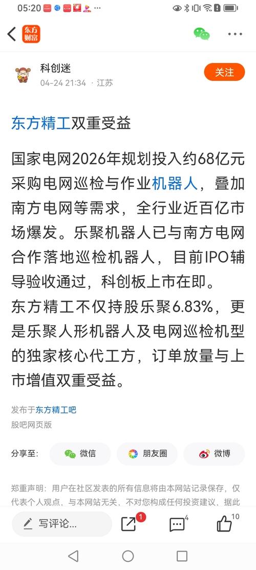 东方精工双重受益 国家电网2026年规划投入约68亿元采购电网巡检与作业机器人,叠加南方电网等需求,全行业近百亿市场爆发。乐聚机器人已与南方电网合作落地巡检机器人,目前IPO辅导验收通过,科创板上市在即。 东方精工不仅持股乐聚6.83%,更是乐聚人形机器人及电网巡检机型的独家核心代工方,订单放量与上市增值双重受益。