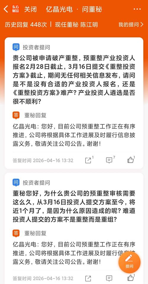 问董秘 董秘,您好!贵公司重整投资人4月9日已经截止招募,是否应该公告报名投资人数量,谢