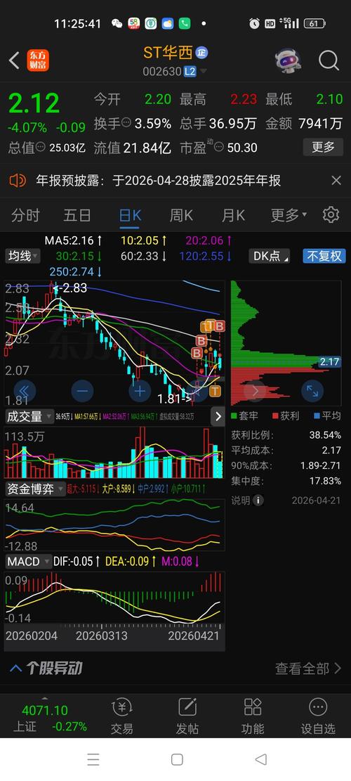 $ST华西(SZ002630)$ 今天的利润回撤了很多。 很正常,没有利好情况下,不可能连续涨停的。 只要你成本够低就可以了。 涨涨跌跌也无所谓了。 看好了就拿着。