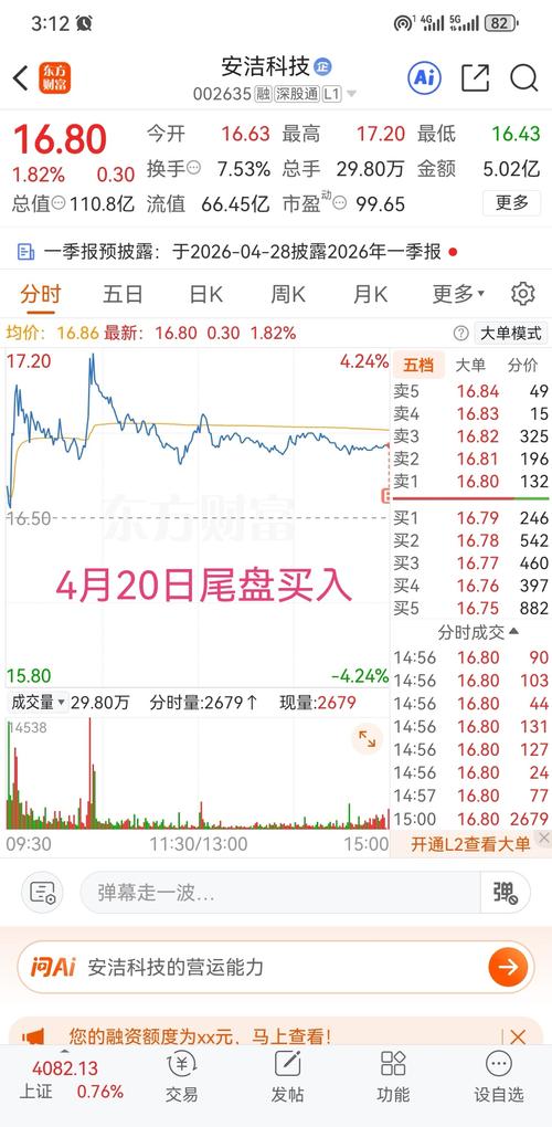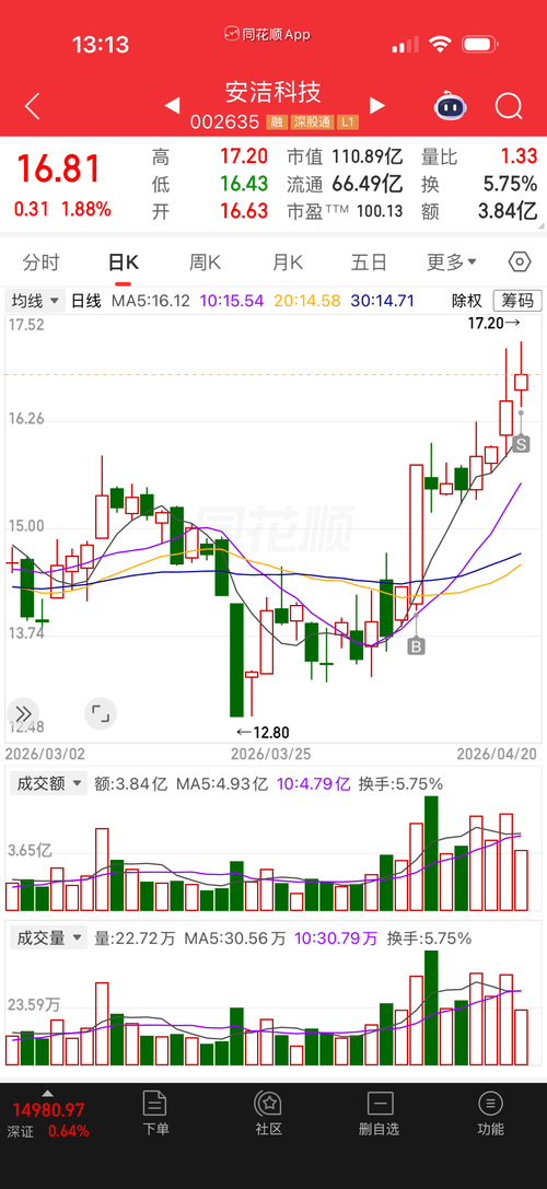 $安洁科技(SZ002635)$猜收盘价,16.80