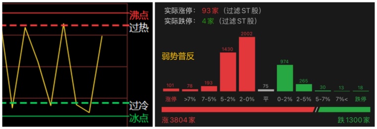 困困小柚子,郑重声明:本文为个人思路,非推荐和建议,请勿盲从。 一、盘面、量能 外盘都开始反弹,大A也直接高开上冲。 不过量能不够,不支持全面反弹,还是冲高回落,继续回归震荡。 但这里也没啥慌的,震荡反弹,不会大跌了。 休息3天后还是缩量,短期量能已经回不来了。 二、情绪、题材 市场情绪:弱势普反,两市涨跌中位数为1.13%。 板块题材:多意愿不足,情绪依旧弱势。 尿素、甲醇、化纤、染料、纯碱,化...