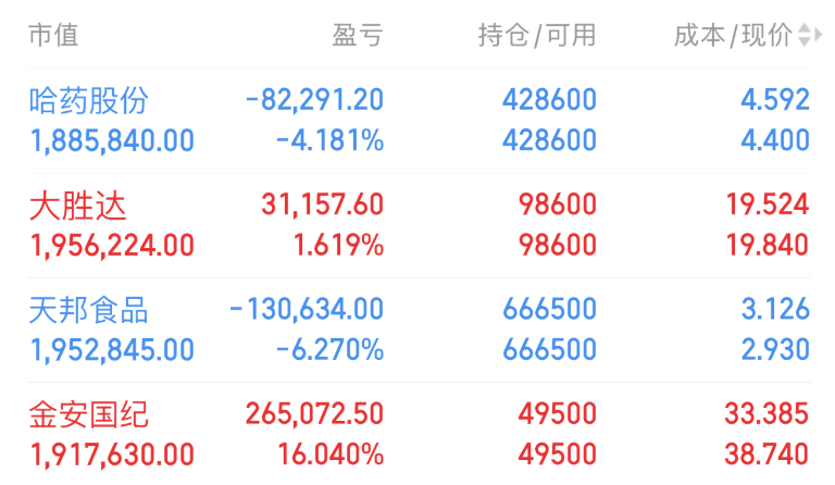 4.17目前持有:哈药股份,金安国纪,天邦食品,大胜达