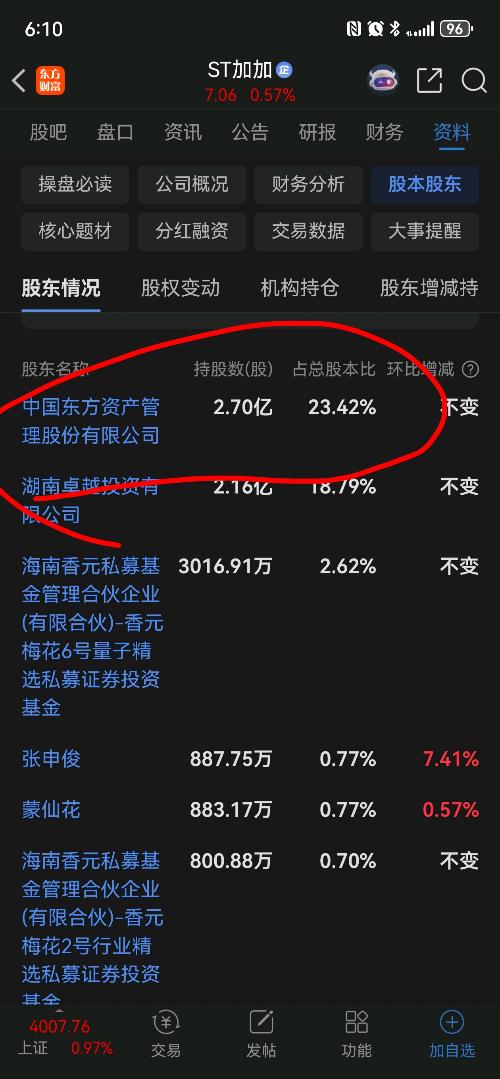 $勤上股份(SZ002638)$山东金融资产自己要当控股股东了,上次就连续三次竞拍进了第二大股东,这次联合东方资管一起搞,东方资管已经连续两次拍卖抵债进十大股东了,后续两家资产管理公司肯定要引进战略投资人进场资产重组,太熟悉这个套路了,看看东方资管重整后控股的$ST加加(SZ002650)$一年时间从1元多干到8元多,现在两家资产管理公司,不得拉爆勤上
