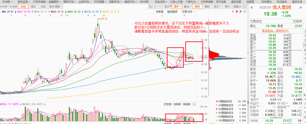 $雪人集团(SZ002639)$ 人今天走得有点弱,开盘19.45元,收盘19.38元跌1.32%,量能比昨天萎缩,但是又又又守住了19元的支撑,这主力还真是,是不是怕我割啊!哈哈!技术上看,这票在20元附近压力山大,但短期趋势还不算走坏。我今天还是没动,主要是不想这时候丢筹码。主力今天明显在出货,上午拉一下就砸,下午拉一下又回落,资金净流出不少。这票的逻辑是氢能和可控核聚变,不过现在市场资金都在...