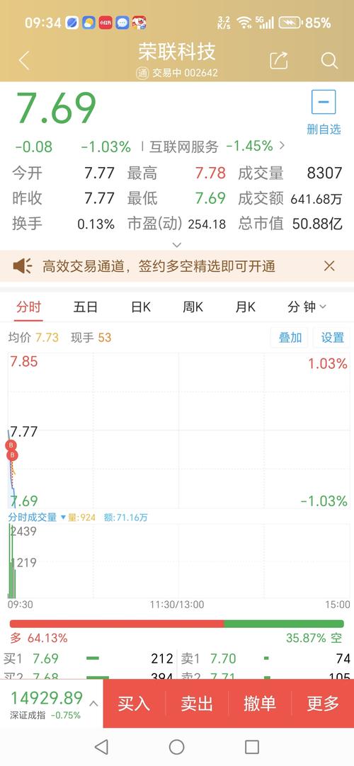$荣联科技(SZ002642)$7.63入