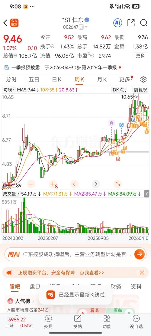 $*ST仁东(SZ002647)$好像是没了,10块多是高位置了,8块多买的,周二我还有1w股跑得快了。