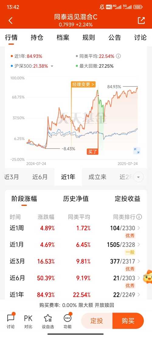 市场之星!同泰远见C上半年跻身灵活配置基金前二,近半年涨幅亮眼,专注北交所优质企业,超额收益持续领先。$同泰远见混合C$