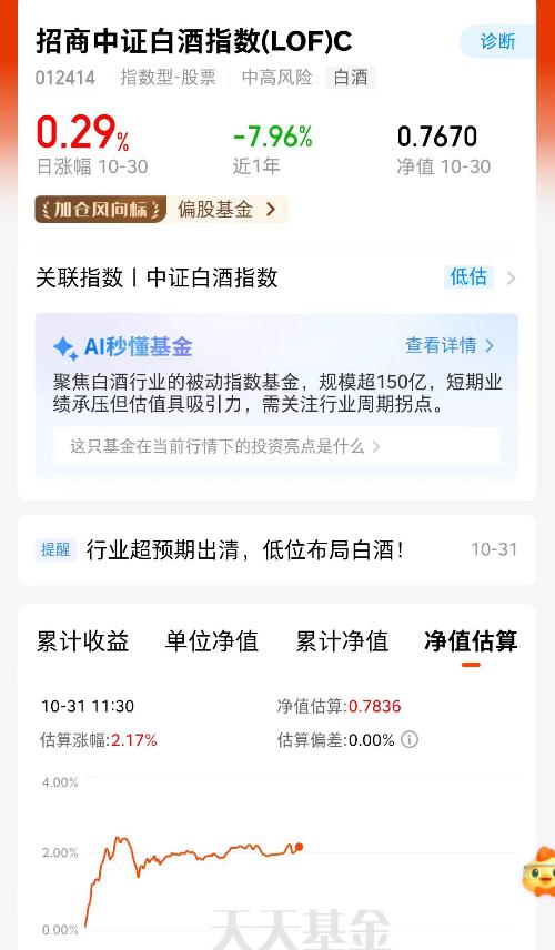 今天早盘三大指数低开,随后震荡,午盘加剧了下跌,盘面上前期上涨比较猛的科技,今天回调;而白酒则逆市上涨;不少人都在问白酒机会来了吗?这个不好说,但就当前白酒的位置,性价比是拉满的,比市场上大多数行业都低估,所以就连段永平都说这个位置还担心什么呢?$招商中证白酒指数(LOF)C(OTCFUND|012414)$白酒已经到了跌无可跌的位置了,就是震荡也不会有很大动静,接下来只可能输时间,上证都到400...