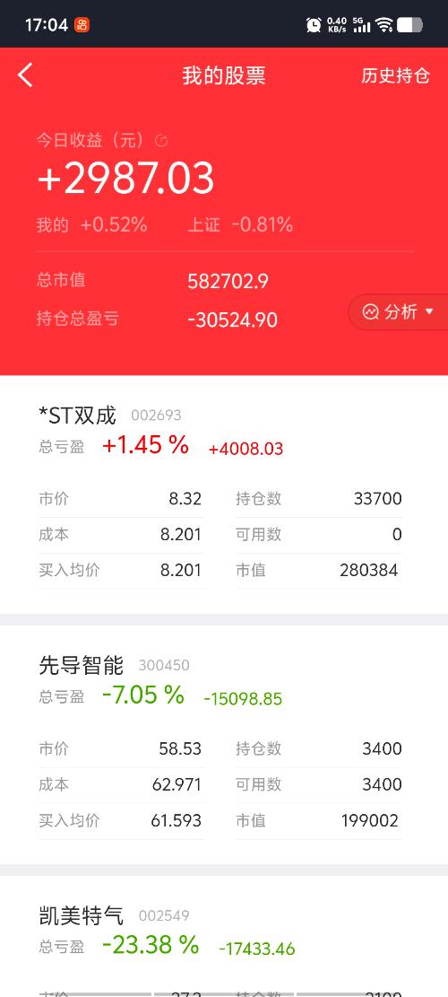股友591809r3w5 更新于 10-31 19:14 454次浏览 $*ST双成(SZ002693)$ 31