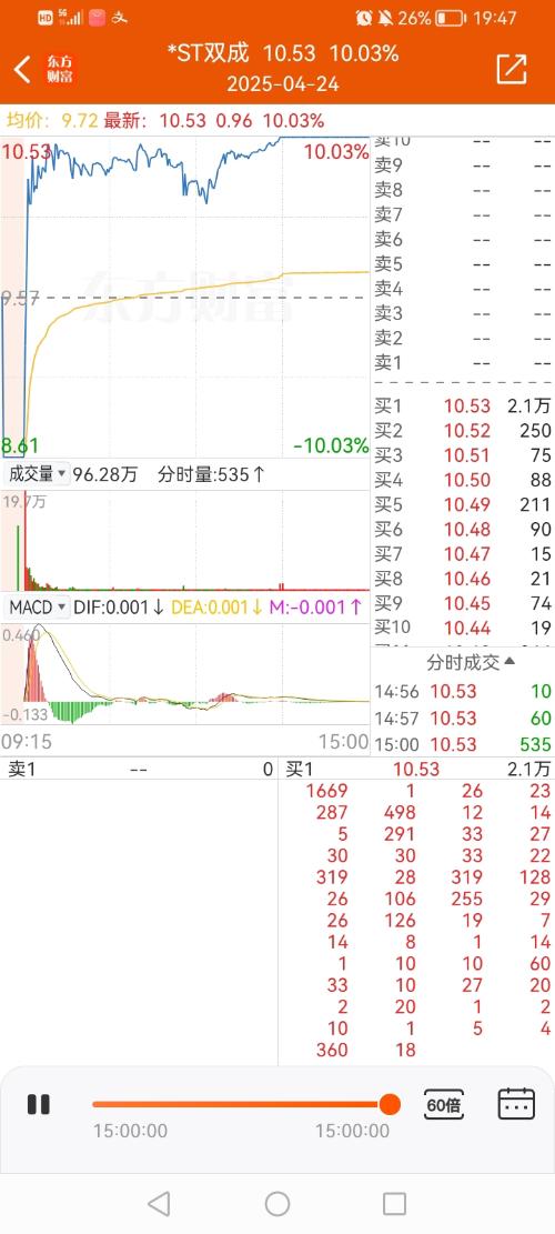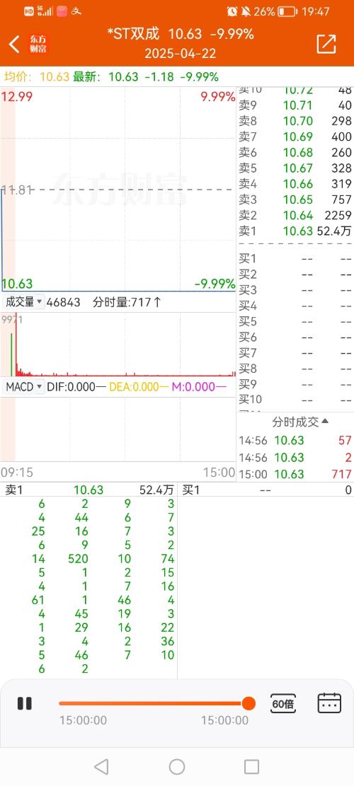 $华建集团(SH600629)$$*ST双成(SZ002693)$双城药业重组失败,三个一字跌停,在第四个跌停板成功地天板!走势可以参考一下!周一跌停就买入,但是集合竞价撬板就不买了,上次被际华集团集合竞价撬板骗惨了