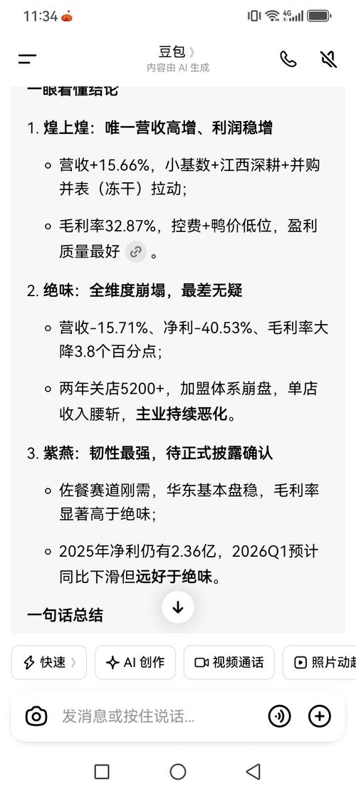 $煌上煌(SZ002695)$一季度业绩看点 全年利润翻倍:2025年净利润+102.32%,主要得益于鸭副产品大幅降价(鸭颈-45%+)和降本增效带来的毛利率修复,立兴食品并表亦提供边际贡献; 收入迎来历史性拐点:2026Q1收入同比+15.66%,结束了连续下滑趋势。 一、公司一句话定位 卤味休闲食品行业龙头之一,以酱卤肉制品(主打“酱香口味”)为基本盘,通过并购构建“酱卤+米制品+冻干食品”...
