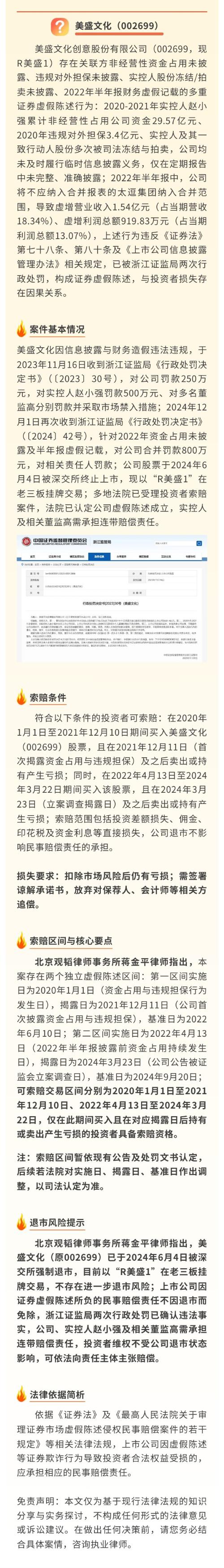 *ST美盛24年终止上市,信披违规受损投资者仍可索赔