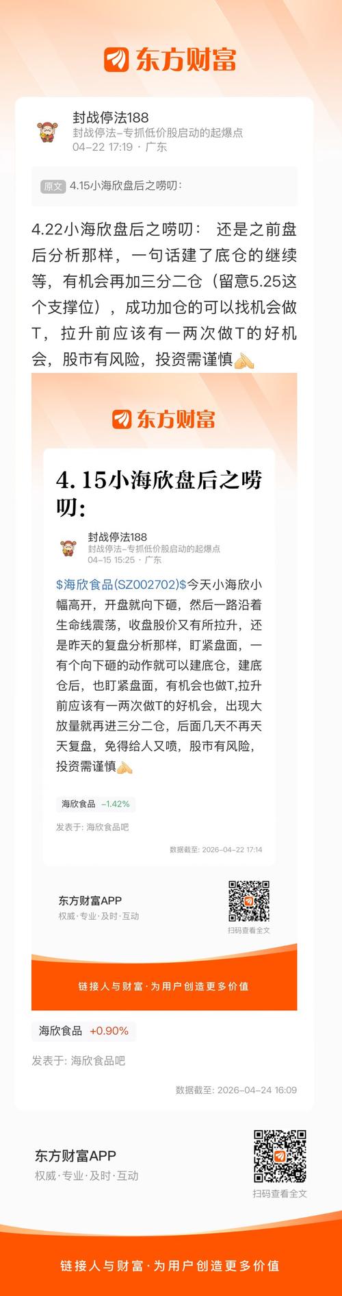 4.24小海欣盘后之唠叨:小海欣还是之前复盘分析那样,在这里不再多说,按计划进行就可以,再次转发自己的帖,股市有风险,投资需谨慎