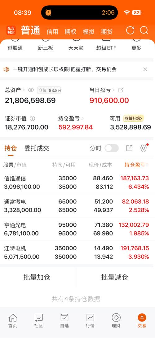 $江波龙(SZ301308)$更新一下今天稳稳吃肉的一天,心态直接拉满 早上给龙大止盈出局了 舒泰神、香农芯创、继续持有 早上新布局$博云新材(SZ002297)$ 不贪多、不急躁,看好逻辑坚定持有,剩下的交给时间和市场。 $天赐材料(SZ002709)$ 有没有同车的朋友?今天你们收益怎么样?评论区来聊聊 声明:仅为个人投资记录,不构成任何投资建议!#炒股日记#...