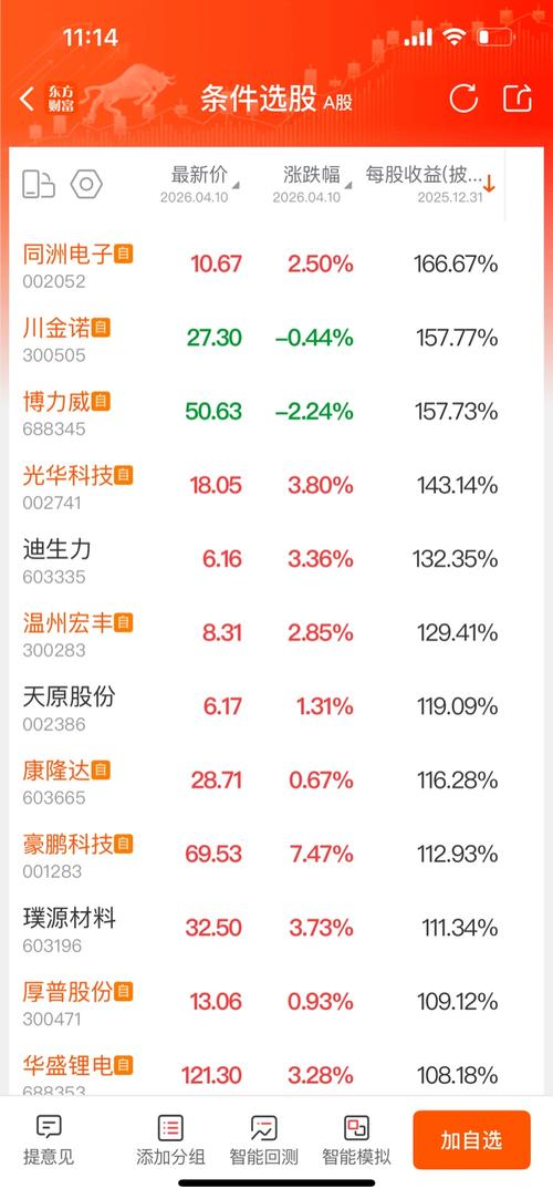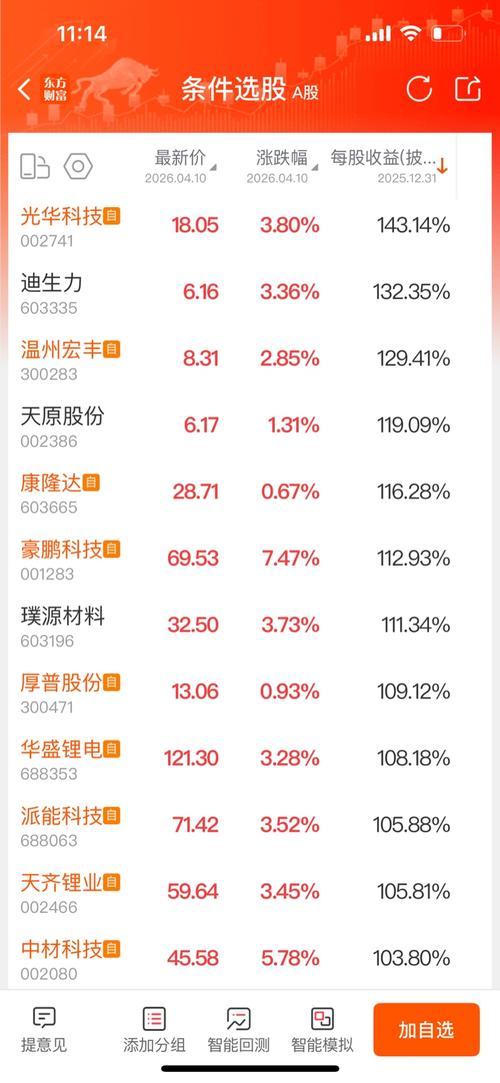至4月11日止已经公布年报净利润增长率超过100%的电池技术类个股