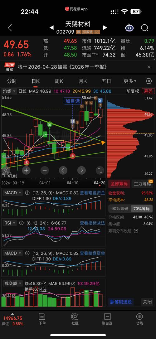 $天赐材料(SZ002709)$这股记住从去年11月开始就是越到51越卖,越到40越买。突破51再加仓