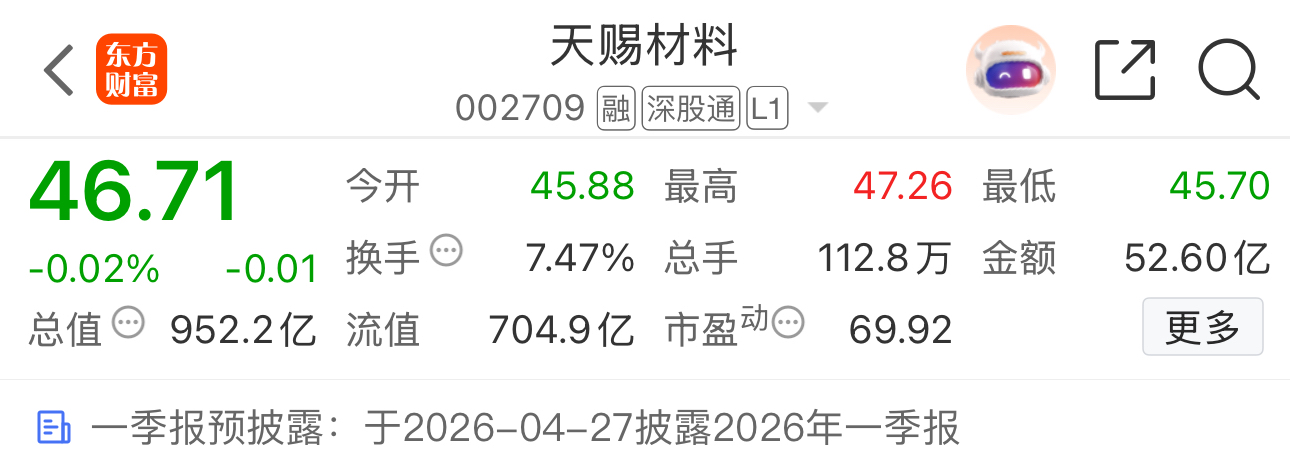 $天赐材料(SZ002709)$不是写了4.27预披露吗?为什么这么多人问
