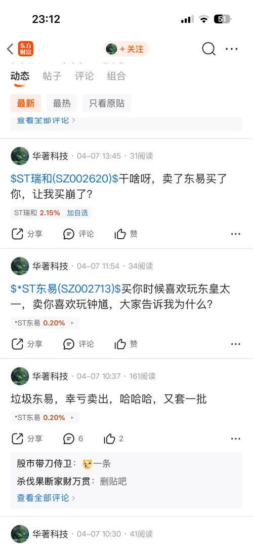 $*ST东易(SZ002713)$ 有本事分析出来几个牛逼的标的出来看看,还一个劲的黑人。就不说别的,东易从十几块钱,一路加仓到八块多,一路持有,一直到现在,以为我们不带脑子,就你一个大聪明? 妍姐在景峰那会,从底部一直拿到阶段高点,走的时候也没有偷偷走,但凡做的标的,从来都会说清楚,妍姐实在,讲义气,又不坑粉丝,我有一说一。
