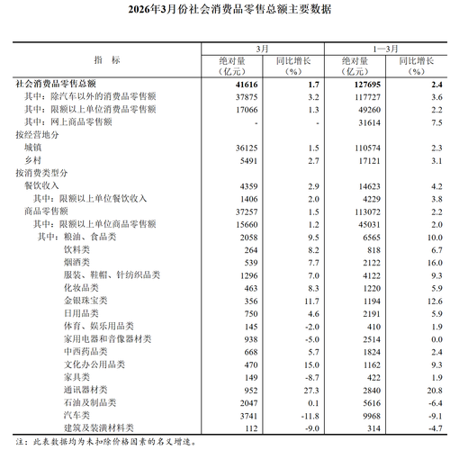 宏观框架实践_3月社会消费品零售总额看投资:总量增长偏低,有亮点