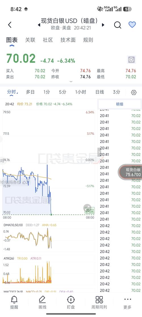 $湖南白银(SZ002716)$白银暗盘跌到70.02美元了。