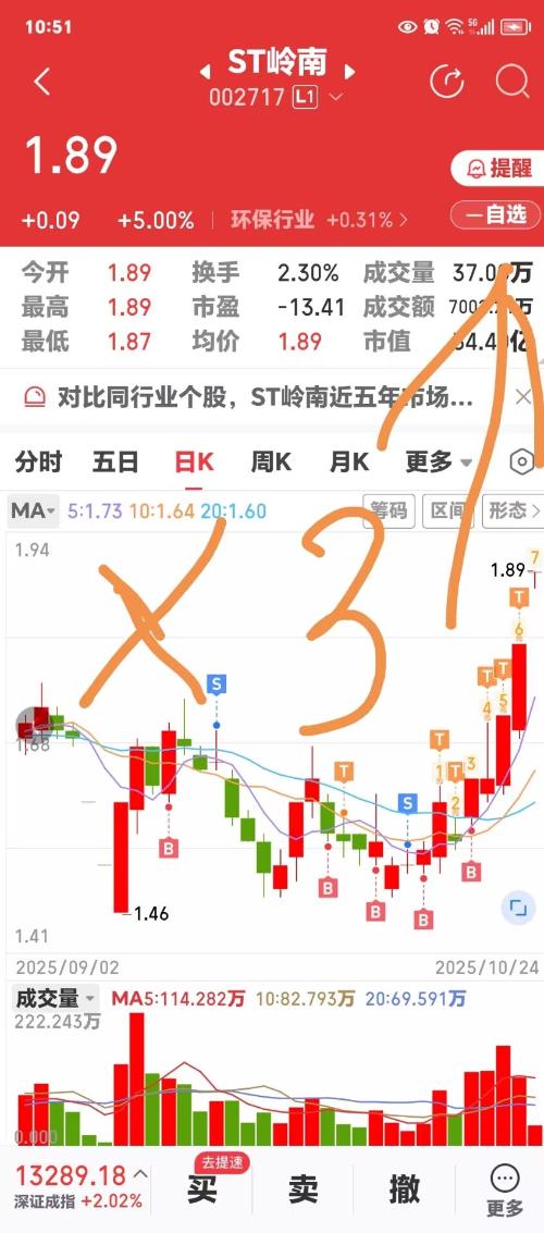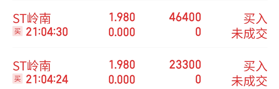 $ST岭南(SZ002717)$ 能不能成交就看明天了